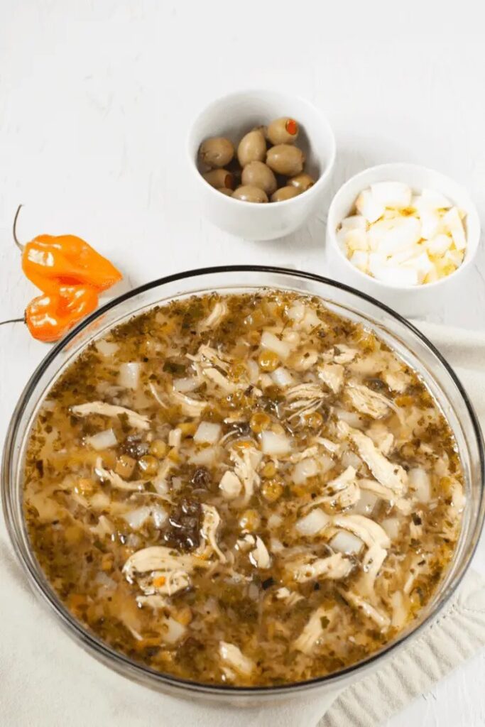 * Carne: Generalmente de res o pollo, picada en cubos pequeños.